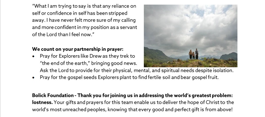 Village to Village July 28, 2025 Joy Cline Global International Mission Board is a faithful partner of The Bolick Foundation.